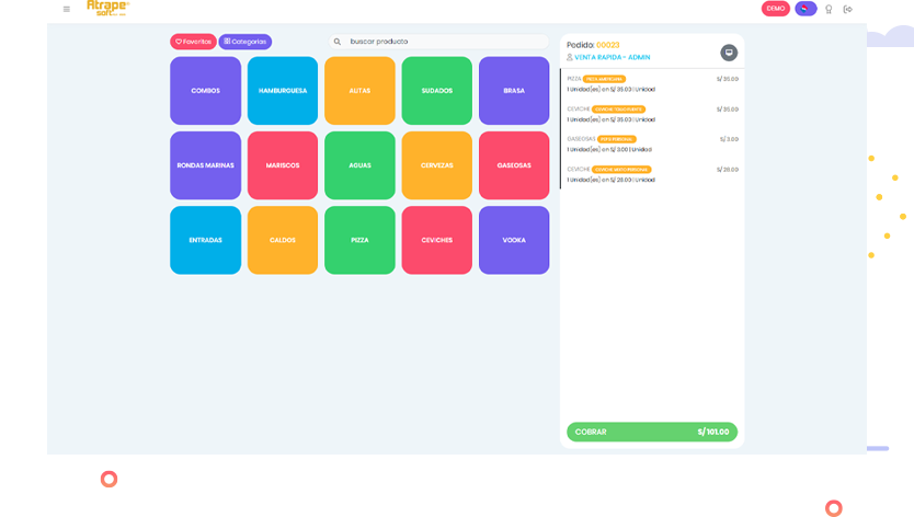 Gestiona tus salones, mesas y áreas de producción de forma óptima según tu negocio. Ideal para chifas, pollerías, cevicherías, pubs, discotecas o cualquier negocio de venta de comida y bebidas con atención al público.